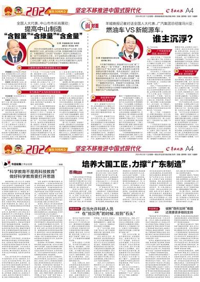 文/图 羊城晚报记者 张德钢 通讯员 郑龙骏 钟轩 2024年全国两会期间,以科技创新推动产业创新、加快推进新型工业化,成为全国人大代表、全国政协委员关注的焦点。在推进新型