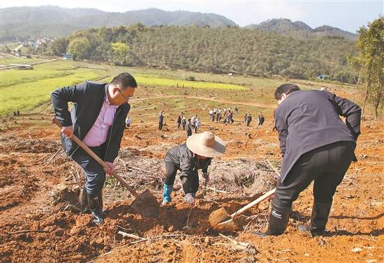 羊城晚报讯 记者李程,通讯员黄振生、徐英豪摄影报道:3月12日植树节,清远英德市开展义务植竹活动,1.8万名干部职工在西牛镇赤米村冷坑组挥锹铲土、培土固根,共种下18万株麻竹苗。 植竹添绿是绿美英德的一大特色。去年,在英德市委、市政府的带领下,全市已开展两次大型义务植竹活动,以点带面带动全市共新增麻竹笋种植15万亩。 “今天正值植树节,我们组织全市24个镇街同步开展2024年全民义务植竹活动,用一株株小竹苗再次掀起全市‘植竹增绿、植竹生金’热潮,这是我们统筹推进麻竹笋产业发展与绿美生态建设的具体行动。”英德市委副书记、市长、市林长翟永鸣介绍道。 据悉,麻竹笋是英德重点打造的百亿级农业产业之一,也是英德富民支柱产业。英德立足自然资源禀赋,把“竹”元素作为绿美英德生态建设重要内容、重要元素和特色,社会效益、经济效益、文化效益显著。目前,英德麻竹笋种植面积达80.81万亩,从业人员达8.8万人。2023年产量超120万吨,增长约14%;产值超61亿元,增长约51%。 翟永鸣表示,今年英德将继续立足生态优势,在开展人工造林和低质低效林改造时积极种植麻竹,以较低成本实现“林分”与“林相”双优化,进一步筑牢粤北生态屏障。同时,以打造麻竹笋百亿产业为抓手,进一步健全产业联农带农机制,实现“含绿量”和“含金量”双提升,力争麻竹笋产业综合产值率先突破百亿元,使富民增收成为绿美英德生态建设的鲜明特征。
