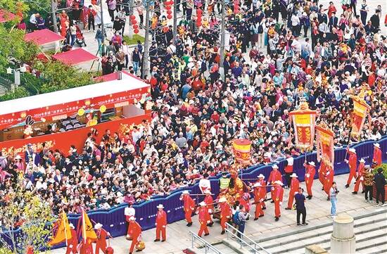 22日,波罗诞正诞日,广州黄埔南海神庙举办“五子朝王”活动,现场人头攒动,热闹非凡 羊城晚报记者 潘俊华 刘畅 梁喻 摄 |