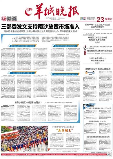 中共广东省委主管、主办 羊城晚报社出版 1957年10月1日创刊 2024年3月23日 甲辰年二月十四 星期六 责编/林圳 美编/黄国栋