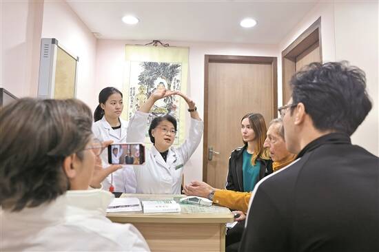 文/羊城晚报记者 林清清 通讯员 查冠琳 宋莉萍 图/查冠琳 “5年前,我在陈秀华教授的治疗下,成功丢掉拐杖。全球疫情这几年我没法继续治疗,病情复发,幸好神奇的中医治疗,让我再次轻松行走!我相信针灸,相信中国医生的方案!”来自法国的Jean Charles Sanson先生开心地说。他万里赴穗,在接受了国家级非遗“岭南陈氏针法”省级代表性传承人陈秀华教授的治疗后,罹患了十多年帕金森病的他,成功地“把拐杖留在中国,健康带回法国”,一家四口也都成为了“中医粉”。 一根小银针,为何能发挥大功效?羊城晚报记者独家专访了陈秀华教授,听她讲如何用非遗技术治疗世界各地患者的故事。 小小银针,让法国友人扔掉拐杖 “他现在状况不错,最近情绪有些低落,但之前有坚持每天做八段锦。”3月21日,陈昭俊在一个社交网络群组里,向陈秀华报告老丈人Sanson先生的状况。 来自法国的Sanson先生,2008年10月起出现了肢体乏力、不能书写、口不能言等症状,在法国当地医院被诊断为帕金森病。尽管一直服用药物维持治疗,但病情变得越来越严重,步行缓慢,双足不协调。 Sanson先生的女婿陈昭俊是中国香港人,以前对中医就有一定了解。2018年6月25日,Sanson先生第一次来到广州。经女婿的朋友介绍,找到广东省中医院大德路总院传统疗法科主任陈秀华。历时3周经过16次系统规范的中医疗法治疗后,Sanson先生病情好转,步行渐稳,转身灵活。到2019年3月回国前的最后一次复诊,除了治疗所用的中药,Sanson先生还带上了陈秀华根据他的病情和体质开出的中药沐足和中药敷包。 没想到,接下来全球暴发新冠疫情,几年来Sanson先生都无法来广州继续接受中医康复治疗。到了2023年11月,Sanson先生病情再次加重,全身肌肉僵硬,双下肢乏力,容易跌倒,而且人也变得抑郁。备受折磨的Sanson先生,虽然行动非常不便,还是决定再次来到中国找陈秀华教授治疗。 疫情后再续前缘,全家都成“中医粉” “经过陈秀华教授的一次治疗,上午扎完,当天下午肢体乏力的症状就有明显改善,而且老丈人紧张焦虑的情绪也大为好转。”陈昭俊反馈说。 随后经过5次治疗,Sanson先生步态平稳,转身灵活,已经不需要拐杖。其实,不仅是Sanson先生,他的女儿及女婿也分别有不同的健康问题,陈秀华分别为他们制定出针灸、火罐、刺血、刮痧、埋线、穴位注射等中医外治疗法和内服中药的综合治疗方案。治疗期间,他们都积极配合,情况也得到好转。 一家四口回国前,陈秀华还根据他们的病情和体质开出调理中药处方,指导一家人进行穴位保健按摩、八段锦和经络养生。Sanson一家都成了“中医粉”,他们感叹:“中国医生对病人就像是亲密的朋友,让每个无助孤独的心灵得到治愈。” 一根小银针,背后是中医大智慧 “我接诊过不少外国病人,涉及的疑难病也比较多。尤其在每年广交会时,就会有挺多国外友人和患者来找我诊治。如患顽固性湿疹的俄罗斯大学教授、患膝关节骨性关节炎的科威特商人、胸椎肿瘤切除术后高位截瘫的沙特青年……还有来自黎巴嫩、南非、加拿大、澳大利亚、摩洛哥等世界各地的患者,他们都接受过‘岭南陈氏针法’的治疗。”陈秀华告诉羊城晚报记者。 很多外国人都很惊讶,为什么同样一根小小银针,通过针灸不同穴位,就能治不同的疾病? “中医有云:经脉所过,主治所及。循经取穴能通经络、调脏腑。”陈秀华解释,“比如说像帕金森病,大家都知道是神经系统疾病,但在中医看来,帕金森病的肢体震颤、肢体麻木、肌肉萎缩等症状,属于颤证、痹证和痿证的范畴。虽然病位在脑,但与肝脾肾三脏相关。‘岭南陈氏针法’通过‘俞募配穴’调脏腑,以‘无痛、无菌、快速、旋转进针’的飞针法施针,配合刺血、火罐、刮痧等中医外治疗法和内服中药综合调治,来达到效果。” 据了解,目前针灸已在全球196个国家和地区得到应用。据世界卫生组织统计,113个世卫组织成员国认可针灸等中医药诊疗方式,29个成员国为中医药的规范使用制定了有关法律法规。 “中医药走向世界,针灸是先行一步的。”陈秀华表示,“目前,针灸穴位已有国际标准,未来,我们还会将国家级非遗‘岭南陈氏针法’标准化的针刺操作、补泻手法传承推广到海内外,希望让更多有需要的人群受惠!”
