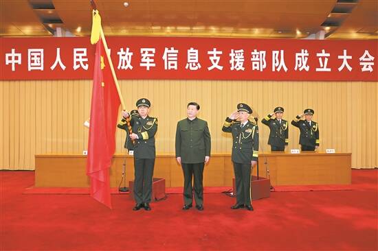 新华社电 中国人民解放军信息支援部队成立大会19日在北京八一大楼隆重举行。中共中央总书记、国家主席、中央军委主席习近平向信息支援部队授予军旗并致训词,代表党中央和中央军委向信息支援部队全体官兵致以热烈祝贺。他强调,要贯彻新时代强军思想,贯彻新时代军事战略方针,坚持政治建军、改革强军、科技强军、人才强军、依法治军,聚焦备战打仗,按照体系融合、全域支撑的战略要求,锐意进取,扎实工作,努力建设一支强大的现代化信息支援部队。 下午4时,成立大会开始,全场高唱国歌。仪仗礼兵护卫着军旗,正步行进到主席台前。习近平将军旗授予信息支援部队司令员毕毅、政治委员李伟。信息支援部队主要领导向习近平敬礼,从习近平手中接过军旗,持旗肃立。全体官兵向军旗庄严敬礼。 授旗仪式后,习近平致训词。他指出,调整组建信息支援部队,是党中央和中央军委从强军事业全局出发作出的重大决策,是构建新型军兵种结构布局、完善中国特色现代军事力量体系的战略举措,对加快国防和军队现代化、有效履行新时代人民军队使命任务具有重大而深远的意义。 习近平强调,信息支援部队是全新打造的战略性兵种,是统筹网络信息体系建设运用的关键支撑,在推动我军高质量发展和打赢现代战争中地位重要、责任重大。要坚决听党指挥,全面贯彻党对军队绝对领导的根本原则和制度,全面加强部队党的建设,坚定理想信念,严肃纪律规矩,弘扬优良作风,确保部队绝对忠诚、绝对纯洁、绝对可靠。要有力支撑作战,坚持信息主导、联合制胜,畅通信息链路,融合信息资源,加强信息防护,深度融入全军联合作战体系,精准高效实施信息支援,服务保障各方向各领域军事斗争。要加快创新发展,坚持作战需求根本牵引,加强体系统筹,推进共建共享,强化科技创新,建设符合现代战争要求、具有我军特色的网络信息体系,高质量推动体系作战能力加速提升。要夯实部队基础,落实全面从严治军要求,严格教育管理,保持正规秩序,激发动力活力,全面锻造过硬基层,确保部队高度集中统一和安全稳定,奋力开创部队建设新局面,坚决完成党和人民赋予的各项任务。 李伟代表信息支援部队发言,表示要坚决贯彻习主席重要指示,坚决听从党中央、中央军委和习主席指挥,聚力备战打仗,忠诚履职尽责,决不辜负党和人民重托。 大会在雄壮的军歌声中结束。之后,习近平接见了信息支援部队领导班子成员,并同大家合影留念。 成立大会上,中共中央政治局委员、中央军委副主席张又侠宣读了习近平签发的中央军委关于组建信息支援部队的命令、信息支援部队领导班子成员任职命令和党委常委会组成通知,中共中央政治局委员、中央军委副主席何卫东主持大会。 中央军委委员刘振立、苗华、张升民出席大会。军委机关各部委、军委各直属机构、各战区、各军兵种、军委各直属单位、武警部队有关负责同志,各军兵种和武警部队官兵代表、文职人员代表等参加大会。 根据中央军委决定,新组建的信息支援部队由中央军委直接领导指挥,同时撤销战略支援部队番号,相应调整军事航天部队、网络空间部队领导管理关系。 相关报道见A2