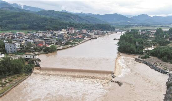 4月21日,流经广东省韶关市武江区的北江支流水流湍急(无人机照片) 新华社发 |