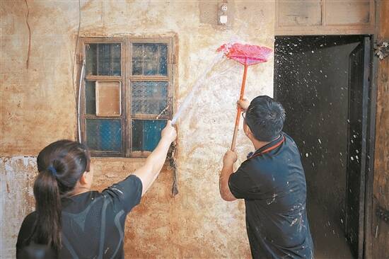 黄星良一家人忙着清淤 羊城晚报记者 曾育文 刘颖颖 摄 |