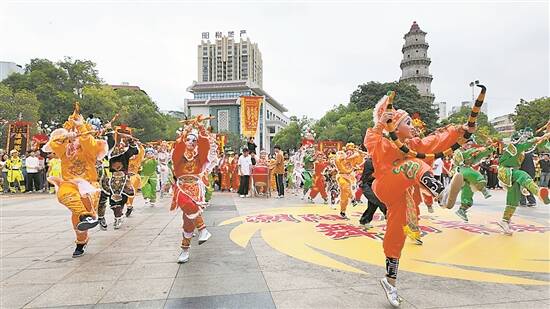 羊城晚报讯 记者赵映光、通讯员李建文摄影报道:昨天是“五四”青年节,汕头市潮阳区在文光塔广场举办主题为“潮阳少年·舞动青春”的校园英歌舞展演巡游活动。全区15所学校的17支校园英歌队共700余名青少年,以激昂的节奏、刚劲奔放的舞姿,诠释着对英歌舞的传承和弘扬,展现潮阳区推进国家级非遗潮阳英歌进校园的成果。 当天上午,伴随着激昂的锣鼓声、击槌声、呐喊声和阵阵掌声,17支校园英歌队伍依次有序在文光塔广场进行精彩的展示,随后沿着中华路方向进行巡游。现场人山人海,热闹非凡,千年古县洋溢着昂扬蓬勃的青春气息。据悉,当天参加活动的青少年男女英歌队队员涵盖了小学一年级至高中各年级。 汕头潮阳是千年古县,历史文化底蕴深厚,民间艺术绚丽多彩,1996年被文化部命名为“中国民间艺术(英歌艺术)之乡”。其中,潮阳英歌是潮阳“三瑰宝”之一,2006年被列入第一批国家级非物质文化遗产名录,在潮阳有着深厚的群众基础和悠久的历史传承,目前全区英歌队伍多达100多支,遍布13个镇(街道)。 近年来,潮阳区委、区政府大力传承弘扬中华优秀传统文化,积极创新思路宣传推广潮阳英歌,推动英歌在潮阳内外、大江南北持续火爆出圈,去年以来更是连续组织开展了多场次大型英歌舞展演巡游活动,推动潮阳英歌跨省出海,让海内外游客更加直观感受到潮阳英歌独有的刚毅舞姿和丰厚的历史魅力。 目前潮阳全区已有30多所中小学校、幼儿园推广英歌舞,培养潮阳英歌后备人才队伍。昨天参加展演巡游活动的17支队伍,就是校园英歌舞的优秀代表。
