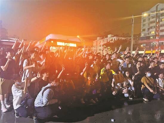 夜幕下,巴士迷与103路末班车合影留念 |