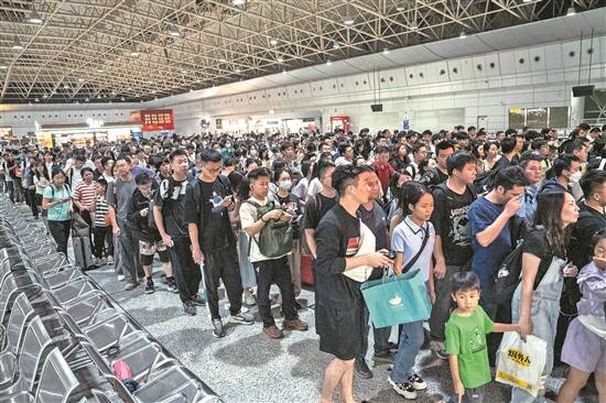 “五一”假期结束,旅客有序验票进入广州东站 羊城晚报记者 钟振彬 摄 |