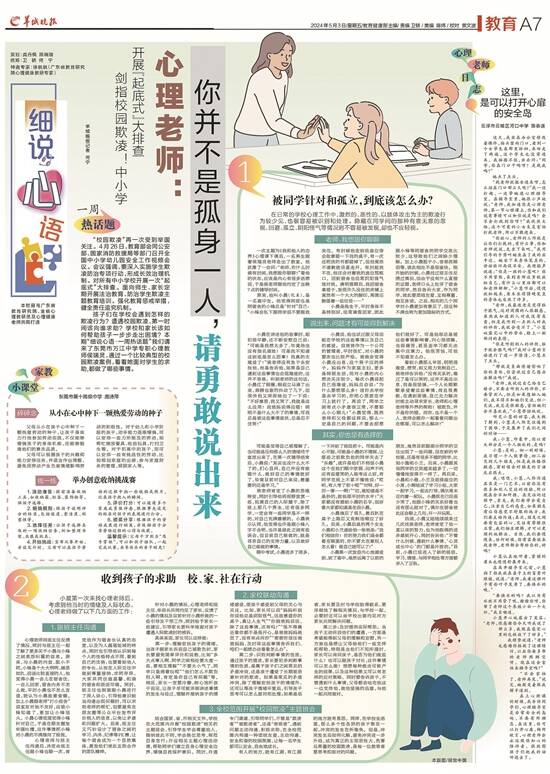 策划:龚丹枫 陈晓璇 统筹:卫 轶 何 宁 特邀专家:徐航航(广东省教育研究院心理健康教研专家) 本栏目与广东省教育研究院、全省心理教研员及心理健康老师共同打造 羊城晚报记者 何宁 一周热话题 一道帘子,近期吸引了人们关注的目光。先是老人吐槽年轻人在火车卧铺下铺挂帘子的短视频引发了热议,两个相对的下铺都挂上了帘子,帘子背后,一个年轻人低头坐着,面对阿姨的指责,年轻人没有理会和搭腔。而多所高校禁止学生挂床帘也冲上微博热搜。 人们关注“床帘”的背后,更多的是对于人与人相处时边界的思考。如今,不少学生从初中甚至小学就开始住校,不可避免要面对如何与室友相处的问题。室友之间会有频繁而近距离的接触,相处得好,可以是一辈子的亲密好友,如果相处得不好,矛盾会激化,甚至走向犯罪的深渊。本期“细说心语”,我们一起来聊聊在共享空间相处时如何把握边界感的问题。 边界意识是基本的人际交往社交礼仪之一 在学生住校期间,无论是在大学、中学还是初中,与室友相处都是一个重要且敏感的问题。“我们首先需要明确,与人相处需要边界意识,这是人际交往需要遵守的社交礼仪之一。在某些时间和场合,我们需要保持独立的个人空间和时间。”深圳市宝安区教育科学研究院心理教研员石红梅表示,在与室友相处的过程中,需要注意的是,“并非所有的关系都是亲密关系,也不是所有的关系都不是亲密关系。实际上,室友并非因为我们志同道合而住在一起,而是因为各种机缘巧合分在一个寝室。在这个环境中,我们需要保持个性和共性。在相对尊重、接纳、亲密、安全和有保障的关系中,可以保持适度的个性。” 石红梅进一步分析,在公共场合中,我们需要保持人际交往的共性规则,即约定俗成的规则。“我们不能在任何场合都强调个人利益。个人的行为和表达,需要与所处的环境相匹配。在群体和公共场所中,我们在顾及个人利益的同时要兼顾公共利益。” 如果遇到与室友有矛盾的情况该怎么办呢?石红梅建议,采用求同存异的态度和方式以匹配角色和环境的关系。“我们需要了解他人的生活习惯、对问题的认识和看法,并尽量保持理解。” 石红梅特别提醒家长,在教育孩子时,不能将学习成绩作为孩子成长和发展的唯一评价标准。“我们需要鼓励孩子们更多地与他人一起玩耍,在与他人互动的过程中学习如何与他人建立关系。” 建议 这些室友相处准则有助于建立和谐的共居环境 在与室友相处的过程中,确实存在一些基本准则,这些准则有助于建立和谐的共居环境。石红梅给出了以下室友相处的建议: 1. 尊重差异:认识到每个人都有自己独特的生活习惯和文化背景,将这些差异视为学习和体验不同文化的机会,而不是冲突的来源。 2. 相互尊重:在不损害彼此利益的前提下,尊重他人的生活方式和观点,通过倾听和思考,拓宽对社会、文化和人际关系的理解。 3. 打破偏见:青少年可能对问题的认识和表达相对片面和主观,有些会比较强调自己的个性。在集体生活中与他人相处和建立关系时,可以尝试克服固有的价值观和障碍,尝试用他人视角。 4. 维护边界:在保护自己的边界的同时,也要尊重他人的边界需求;当需要他人尊重你的边界时,也要确保你对他人保持适当的距离和尊重。 5. 制定共同规则:通过集体讨论,制定一套大家都认同并遵守的宿舍交往和管理的基本规则。 6. 体谅他人:不要过分强调自己的感受。在考虑自己的感受时,也要设身处地考虑他人的感受,避免以自我中心和不理解他人的行为。 7. 持续学习:人际相处是一个不断学习和适应的过程,无论年龄多大,都需要不断调整自己的认识,调整自己的行为,降低对他人不合理的期望,在实际生活中学习如何更好地与他人相处。 通过遵循这些准则,大家可以共同努力营造一个充满尊重和理解的居住环境,相信孩子们可以更好地与室友相处。 总的来说,人的一生每天都在发生与人相处的过程,这是一个不断学习和磨合的过程,绝非学到一个技能就可以一直使用或者保证如何。石红梅说:“我们需要自我反省,同时也要顾及他人,学习把握分寸、幅度,以及调整对他人和环境不合理的期待要求。” 孩子多大适合住校? 如今,越来越多孩子初中就开始住校了,甚至有的小学就已经全寄宿了。到底孩子多大开始住校比较好?在家长群里这一问题一直热度不减。湛江市霞山区教师发展中心心理教研员郭晓春表示,孩子住宿的适合年龄主要是根据孩子的心智发育情况而定。“一般而言,小学阶段的孩子不宜住宿,过早寄宿,父母缺席孩子身心发育的关键期,不容易发现孩子的问题,无法及时给予孩子心理支持和做行为矫正。” 郭晓春指出,对于那些确实需要寄宿的孩子,家长要在寄宿前做好孩子的心理建设,教会孩子必要的生活自理技能、求同存异、正确表达、情绪管理等与人相处之道、紧急情况的处理方法等。“孩子寄宿后,家长要多关注孩子的在校表现,多与老师联系,及时解决孩子的困惑。不能采用‘老师,都交给你了’的方式撒手不管。建立良好的亲子关系、同伴关系,帮助孩子建立归属感、价值感很重要。这样,孩子遇到挫折的时候,才能够将父母、老师、同伴视为坚强后盾,积极地在学校、家庭寻求支持,而不至于用极端的方式解决问题。” 提醒 适当的集体生活对孩子成长是有利的