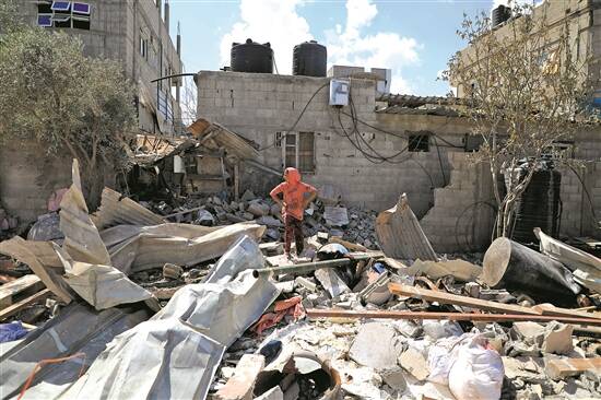 5月7日,在加沙地带南部城市拉法,居民查看以军轰炸后的废墟 新华社发 |