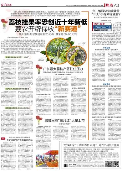 文/图 羊城晚报记者 秦小辉 实习生 吴宏铭 进入5月,岭南佳果荔枝悄然出现在市场上。与此同时,关于“荔枝自由”的话题冲上热搜。受强降水等异常天气影响,叠加大小年因素,今年荔枝减产恐怕已