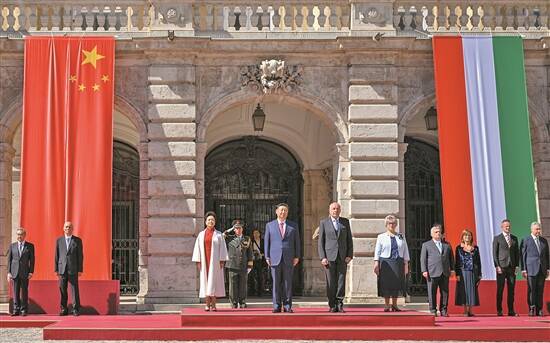 新华社布达佩斯5月9日电 当地时间5月9日上午,国家主席习近平在布达佩斯出席匈牙利总统舒尤克和总理欧尔班共同举行的隆重欢迎仪式。 初夏时节的布达佩斯阳光明媚,古老宏伟的布达王宫庄严矗立,中匈两国国旗相映成辉。 习近平和夫人彭丽媛乘坐的国宾车队在匈牙利礼宾马队护卫下缓缓驶入布达王宫内庭。舒尤克总统夫妇和欧尔班总理夫妇热情迎接。 两国元首共同登上检阅台,军乐团奏中匈两国国歌。习近平在舒尤克陪同下检阅国防军仪仗队和骑兵仪仗队。两国领导人夫妇分别同对方陪同人员握手,互致问候。 欢迎仪式结束后,习近平主席夫妇同舒尤克总统夫妇和欧尔班总理夫妇亲切道别,相约稍后分别会见,共同擘画中匈关系未来。 蔡奇、王毅等出席。