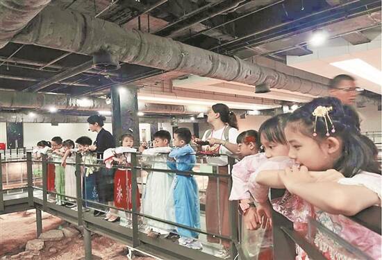 学生在广州南越国宫署遗址听讲解 资料图 |