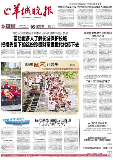 中共广东省委主管、主办 羊城晚报社出版 1957年10月1日创刊 2024年5月16日 甲辰年四月初九 星期四 32℃ 20℃