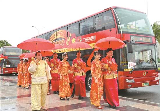 文/严艺文 公交宣 图/受访方提供 凤凰于飞,翙翙其羽。5月21日,在开遍火红热烈凤凰花的花城,新中轴线上海心沙公园与磅礴的珠江交相辉映。为响应国家号召,助力幸福羊城建设,广州公交集团在海心沙码头举办“穗悦同行 缘定公交”集体婚礼活动。二十对青年职工新人,在同事亲友的见证下,许下永结同心的美好誓言。这场别开生面的集体婚礼不仅见证了新人们的幸福时刻,也彰显了广州公交对员工的深厚关怀与美好祝福。 水陆联动 绿色出行助力婚事新办 5月21日早上,20对新人脱下工装,换上中式传统婚服,登上量身打造的“双喜掂车”双层纯电动巴士,开始了广府传统婚礼的“接亲”仪式。“双喜掂车”从有着百年历史的天字码头出发,驶过寓意美好兴旺、繁花似锦的吉祥路、花城大道和华夏路,到达广州新中轴线上的海心沙码头主会场。 一路上,全车装饰着中国红,印有烫金大“囍”字的“双喜掂车”成为最亮眼的风景线,“欢天囍地”“皆大欢喜”“一囍(起)来电”等广府俚语“囍”卷全车。步入车内,“喜事临门”“平步青云”“欢囍同路”等美好祝愿,让新人们感受到浓浓的喜庆气氛。来自公交服务一线的监控员新人陈家宁激动地说:“熟悉的公交车厢此刻变身装饰一新的婚车,太惊喜了!这里有爱有传承,这就是属于我们的婚礼!” 俗话说“百年修得同船渡,千年修得共枕眠”,在海心沙码头,新人们登上喜庆的“珠水百年号”游船,沉浸式体验了水上婚礼的古典与浪漫,同时还收获了集团精心准备的“文创喜庆大礼包”。新人越秀媚是一名珠江游的服务领班,在她看来,水陆联游的婚礼非常有纪念意义,“我们体验到中式婚礼的浪漫与美好,也深切感受到公司的关怀,这次集体婚礼是我一辈子的美好回忆!” “非遗”操持 感知传统与创新的和谐共鸣 此次婚礼特别邀请了岭南非物质文化遗产传承人、广府传统婚俗第四代传承人“八姑姐”前来操持婚礼仪式。“八姑姐”作为婚礼上的“大妗姐”,在“接亲”路上,详细地为新人们解说了途经的每一条吉祥路段的寓意,为新人送上真挚的祝福。 而在海心沙主会场,新郎撑着红伞,与新娘手牵手,跨过寓意“生生不息、身壮力健、延绵幸福”的火盆,缓缓步入仪式现场。“一敬祝祖国繁荣富强、国泰民安;二敬祝与会来宾、父母身体健康、幸福绵长;三敬祝夫妻互敬,相知相守,相亲相爱到白头。”新人们完成敬茶仪式后,还郑重地进行了“结发礼”,许下执子之手、与子偕老的约定。 广州公交集团党委书记、董事长、总经理李小军为20对新人们送上最热烈的祝贺和最诚挚的祝福,祝贺新人们携手步入婚姻的殿堂,开启属于自己新的人生旅程。 李小军表示,公共交通作为城市发展的重要组成部分,承载着无数市民对出行的美好愿望,而广州公交集团的青年职工们,用自己的汗水和智慧为城市交通发展和市民美好出行贡献着自己的力量。集团注重职工的成长和发展,此次集体婚礼的举办,不仅为青年职工提供了一个展示自我、展现幸福的平台,更增强了企业的凝聚力和向心力,是对集团“美好生活 一路同行”的生动诠释。 “掂车婚船” 引领婚庆时尚新潮流 近年来,广州公交集团充分发挥资源优势,为广大市民提供更省心、更贴心的多元化公交服务。通过聚焦“甜蜜经济”市场需求,结合个性化婚庆服务和集体婚礼等活动,推出的“双喜掂车”和“浪漫流金·水上婚礼”等定制化公交婚庆服务受到市民的欢迎。 截至目前,“双喜掂车”共举办个人和集体婚礼共20场次,服务超过120对新人;客轮公司旗下拥有“远海启航号”“鹅潭印象号”“珠水百年号”“南海神号”等多艘中西式特色游船,并成为海珠区婚庆服务产业联盟成员单位,自2023年年底首次推出“浪漫流金·水上婚礼”以来,已举办6场次的求婚、结婚用船需求,目前水上婚礼业务咨询迎来高峰期。接下来,客轮公司将争取创建广州市首个水上办证点,为新人们提供一个兼具浪漫和仪式感的结婚登记新选择。