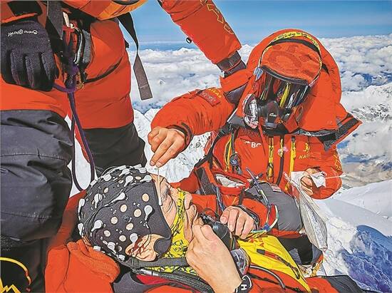 在珠峰顶采集静息态脑电数据和皮肤微生物样本(受访者供图) |