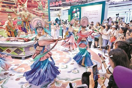 甘肃展位《乐舞敦煌》表演吸引了不少观众 羊城晚报记者 王磊 摄 |