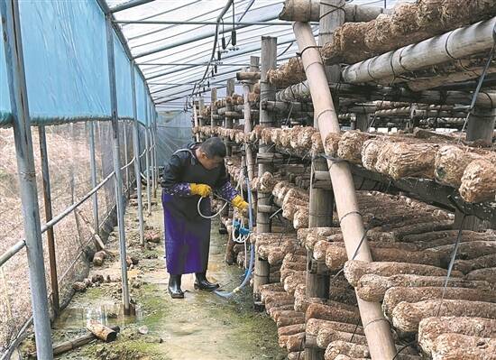 种植户正在照护食用菌 |