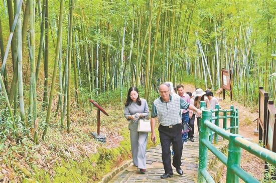 调研人员走进苏家围调研,穿过当地的竹林 |
