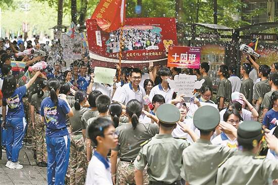 6日上午,广大附中,其他年级的学生为高三学子送考壮行 羊城晚报记者 林桂炎 潘俊华 摄 |