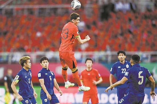 羊城晚报记者 柴智 阿兰、韦世豪射门分别中柱中梁,费南多将点球射飞,国足的出线梦想差点触手可及。在0比1落后之际,若不是拜合拉木临危救主,“福地”沈阳险些见证中国足球的又一次“黑色记忆”。 6月6日,在2026年美加墨世界杯预选赛亚洲区36强赛第5轮赛事中,中国男足国家队坐镇沈阳奥体中心以1比1战平泰国队,保留出线悬念。在这场冲击18强赛的命运之战,中锋拜合拉木在国家队首秀中攻入处子球,帮助国足惊险收获一分。C组五轮过后,韩国队已提前出线,国足领先泰国队3分、3个净胜球,末轮只要在客场战平韩国队即可挺进18强赛。 单后腰形同虚设,国足城门率先失守 如果将中泰之战视为中国男足四年一度的“高考”,赢球即可提前一轮出线的形势,意味着国足主帅伊万科维奇面临的唯一命题只有一个——进攻、进球!在头号射手武磊停赛、张玉宁刚刚伤愈的情况下,伊万科维奇在进攻端亮出了手中的全部底牌:韦世豪与两名入籍球员费南多、阿兰组成三叉戟。 对比去年11月客场2比1战胜泰国队一战,国足的首发名单进行了多达9人的调整,只有韦世豪和朱辰杰继续先发。王大雷出任首发门将并戴上队长袖标,两名新人徐皓阳和王振澳上演国家队首秀,分别出任右前卫和右闸,攻守能力均衡的前者将辅助后腰王上源完成拦截任务,后者则火线顶替接受阑尾炎手术的高准翼。在国足的防守体系中,后腰和右闸两个位置被认为是最不稳定的环节,两名大赛经验匮乏的新星在国家队首演就临危受命。 尽管有主场优势的加持,但国足面对将小快灵打法演绎得越发成熟的泰国队,丝毫不占上风。上半场,泰国队利用快速的轮转,不断冲击着国足的防线,后场看似漫不经心的长传总是能够精准找到中锋素巴猜。 王上源在后腰位置疲于奔命,国足防线前的屏障覆盖面积十分有限,加上首次面对大场面的徐皓阳和王振澳在高压之下略显稚嫩和紧张,让泰国队有了更多的空间,施展他们最为擅长的地面传控。第20分钟,场上的平衡被泰国队率先打破。中锋素巴猜在国足右路形成突破,协防到右路的蒋光太未能及时作出逼抢,反被对手送出致命传中,高天意在中路未能第一时间补位,泰国队中场素巴楚头球破门。 球员连线,拜合拉木处子球价值连城 国足的进攻三叉戟韦世豪、费南多和阿兰均是拿球型球员,具备单兵突击能力。尽管三人的连线制造了阿兰击中门柱、韦世豪击中横梁的破门机会,但在中场梳理几乎被切断后,国足的进攻以后场长传,寻找毫无空中优势的进攻三人组为主,在支点严重缺失的情况下,进攻屡屡无功而返。第29分钟,主帅伊万科维奇用中锋拜合拉木顶替中场高天意,试图在前场增加高点冲击对手防线,被逼入绝境的国足唯有放手一搏。然而,由于缺少有效高压紧逼,国足的防守形同虚设,泰国队在上半场结束前两次击中门柱,国足逃过一劫。 下半场,国足吹响反攻号角。费南多原本有机会凭借一己之力拯救国足,却两次葬送绝佳的破门机会。第49分钟,泰国队中卫吉沙达忙中出错在禁区内手球。上轮世预赛,国足正是凭借费南多的点球扭转战局,最终大胜新加坡队。然而,再一次站在12码的费南多却将这个救命点球射飞。第70分钟,费南多利用速度优势完成反抢并过掉对方门将,但未能第一时间射门,而是选择横传,可惜中路无人跟进包抄,再次浪费黄金得分机会。 此后伊万科维奇连续换上谢鹏飞、谢文能和张玉宁,甚至让中卫蒋圣龙客串中锋。在危难之际,3名球员挺身而出完成连线。第79分钟,谢鹏飞罚出的前场任意球找到朱辰杰,后者头球助攻,拜合拉木在禁区内乱战中扳平比分,在国家队首秀就攻入价值连城的进球。最终,国足惊险战平对手,将出线悬念留到了最后一轮。