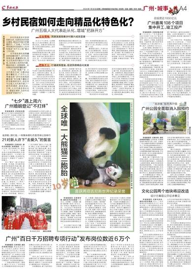羊城晚报记者 柳卓楠 通讯员 穗仁宣 乡村民宿是乡村旅游的新业态,也是促进农民就业增收、推动乡村振兴的重要抓手。广东省、广州市均将发展乡村民宿列入2024年推进“百千万工程”重点工作任务