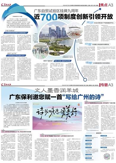 羊城晚报记者 孙绮曼 7月30日,中国(广东)自由贸易试验区成立九周年建设成果新闻发布会举行。记者从会上获悉,九年来,广东深入推进自贸试验区建设,围绕投资、贸易、金融、粤港澳合作等