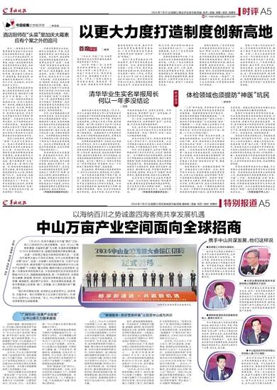 文/图 张德钢 郑龙骏 朱梓泓 钟轩 7月30日,在深中通道正式开通“满月”之际,珠江口西岸的中山再次被聚焦。当天,中山以“畅享新通道·共赢新机遇”为主题,在温泉宾馆隆重举