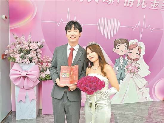 羊城晚报讯 记者李春炜、实习生石明昊,通讯员海宣摄影报道:广州海珠区户外结婚证颁证点再添“新成员”!8月2日,在广州市民政局、海珠区婚庆产业发展专班指导下,海珠区民政局等单位在中国工商银行广州琶洲人工智能与数字经济试验区支行揭幕启用全国首家金融机构户外结婚证颁证点。 在明亮的玻璃大厅内,一块粉色背景板上印着一对卡通的新人,旁边摆放着装饰精美的椅子和浪漫的心形气球,为颁证仪式增添了温馨的气氛。 “这个颁证点的吸引力在于其优美的环境,在这里拍照很‘出片’,我们很高兴能在这里领证。”现场领证的新人蓝先生、陈小姐介绍说。 “琶洲是海珠区年轻人聚集的地区之一。我们希望通过‘海誓山盟,珠联璧合’的主题活动,使年轻人能够真正体验到这一美好的主题。未来,我们也将不定期开放预约,欢迎市民朋友前来参与!”海珠区民政局副局长黄晓葵介绍。 本次新增颁证点合作机构为中国工商银行广州琶洲人工智能与数字经济试验区支行,其扎根互联网聚集区,致力于为琶洲总部企业和大模型企业注入强劲的金融活力。新增颁证点也可为琶洲试验区青年才俊提供特色户外颁证服务,展现了对区域内青年群体和高端人才的深切关怀。 现场还发布了海珠区婚庆主题曲《请带我去江南西》,该主题曲以AI技术讴歌大美海珠,让人们感受“广州幸福岛”浪漫风情和文化底蕴,吸引更多年轻人落户海珠,爱上海珠。 活动当天,作为婚庆产业联盟合作金融机构,工商银行琶洲数字支行与海珠区民政局签署了战略合作协议,为婚庆产业高质量发展注入金融力量。活动也为第三批婚庆产业发展联盟进行了隆重的授牌仪式。 据介绍,近期,海珠区民政局不断创新推出特色户外颁证点,旨在促进文化经济深度融合,实现双创新、双发展的新格局。2024年第一季度,海珠区婚庆产业相关行业营收达到了193亿元,实现同比增长12.1%,进入第二季度,营收更是突破了440亿元大关,上半年规模以上企业数量新增140家。海珠区婚庆产业展现蓬勃生机。