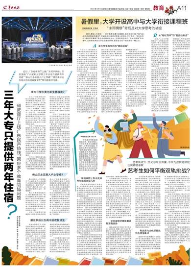 文/羊城晚报记者 孙唯 实习生 钟蕴凌 张梓欣 图/主办方提供 近日,广东省教育厅上线广东民声热线。节目围绕“广州某职业学院三年大专只提供两年住宿”“佛山三水买房入户上学难”“