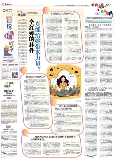 主持/羊城晚报记者 何宁 本期特邀专家/杨阳 杨彩云 巴黎奥运会的赛场上,既有技术和体能的较量,也有情绪和精神的较量。世界排名第一的中国男乒选手王楚钦,在夺得混双冠军之后没多久,他的主球拍被摄影记者意外踩断。次日,他意外爆冷不敌瑞典选手莫雷加德,无缘16强。临时换球拍真的会对运动员影响如此之大吗?跳水冠军全红婵,她一直喜欢各种公仔娃娃,这次奥运会,她的背包上挂满了各种可爱的挂件,这些挂件真的能给她带来好运吗?本期细说心语,我们来聊聊孩子们常常带在身边的心爱之物,对于他们到底有怎样的意义? 幸运物能给人带来什么? 此次巴黎奥运会上,相信很多人都关注到了运动员们随身携带的似乎能给他们带来好运的幸运物,比如全红婵一书包的挂件,陈梦脖子上戴着的翡翠等。很多人会在考试或者比赛时带上自己的幸运物,希望它能带来好运。这到底是什么心理呢?广州市天河区教育发展研究院心理研训员杨阳表示,带着幸运物上考场或者赛场,这背后的心理机制复杂多样,总结来说,主要有以下三个方面: 一是自我暗示。在心理学中,自我暗示是一种重要的心理现象,个体可能寻求物质性对象以增强信心,相信这些物品能带来额外的力量和好运。诸如幸运符或挂饰等物品,它们并非仅是简单的装饰品,而是成为个体自我暗示的工具。通过这些物品,个体能够迅速地向自己传递积极的信息,从而在心理上获得支持和力量。 二是过渡客体。心理学中将此定义为个体在从一个环境转移到另一个环境的过渡期所依赖的物品,例如儿童时期的洋娃娃或玩具。这些物品在父母无法持续提供陪伴时,给予儿童安慰和伴随的感觉。成年人也可能依靠类似的物品,以获得心理上的慰藉和支持。它们象征着安全和熟悉,提供了一种心理的连续性,帮助个体在面临新环境和挑战时保持心理和情绪的稳定。 三是归因理论。一些人将自己的成功归因于个人能力和努力,而另一些人则认为需要运气或外界不可控因素的辅助。因此,他们可能将希望寄托于某些物品上,认为这些物品能为他们带来好运。 ■支招 积极的心态才是幸运符 杨阳强调,这些幸运物品是否真能带来好运,关键在于作为主体的个人如何去利用它们。“积极的心理暗示可能有助于提高个人表现,但同时也存在过度依赖的风险。如果个体将所有信念都寄托在某物上,一旦该物品丢失或损坏,可能会引发消极的心理反应。” 杨阳提醒道,重要的是学会将外部的幸运物品内化为个人的心理资源,使自己成为自身的幸运符。“我们在比赛或考试中,应学会忘却过去的成败经历,让每一刻都是新的开始,不过度依赖外部物品,而是依靠自己的能力、努力和心态面对挑战。这样,无论面对何种情况,都能保持积极的心态,发挥出最佳水平。” 巴黎奥运会乒乓球男单四分之一决赛时,樊振东一开始0:2输给张本智和。第三局开始前,教练王皓带樊振东去换了件球衣,回来后樊振东像换了一个人一样,完成惊天大逆袭。这不禁让人想起2016年里约奥运会上,马龙0:2落后,刘国梁也带他换了身球衣,而后马龙胜出。刘国梁曾出面解释过,当时,他对马龙说,换件衣服重新开始。 杨阳说,这就是孤注一掷的决心,“忘记过往,清零重来,所有杂念都排除,往往能发挥出真实的水平。” 如何应对突发状况? 人们不禁要问,在赛场和考场上不可避免有意外情况发生,比如像王楚钦这样,一直用习惯的球拍突然被踩坏,内心是崩溃的。遇到这样的突发情况,该如何调整自己的情绪呢? 清远市教师发展中心教研员杨彩云表示,当消极情绪扑面而来时,我们可以和消极情绪积极对话,不妨尝试以下五个步骤: 第一,看到自己的情绪。试着问自己:我现在是什么情绪?我身体上有什么反应?这个情绪的程度如何?刚才发生了什么事情? 第二,表达自己的情绪。可尝试以下方法来表达自己的情绪: 1.闭上眼睛,深呼吸10秒。同时告诉自己:没事的,可以解决的。 2.转换环境。如果可以的话,尽量离开事情发生当时的环境,至少是一段距离。 3.有效表达。可以用这样的句式来表达(我看到_____,我感到_______,因为______,我希望______),客观地告诉别人自己的感受是怎样的,自己需要什么帮助。这能有效促使事情往解决的方向去发展。如:我听到老师您说我偷懒(描述事情),我感到很生气,很委屈,我想哭(自己的感受),因为我一直在擦玻璃,直到您进来前几秒钟才停下来(澄清事实),我希望您不要单凭看到的一个片段就下结论(寻求帮助)。 第三,找到情绪背后自己想要什么。 情绪其实不分好坏,每一种情绪都藏着重要的信息,那是我们自己心里的渴望和期待。这一步我们可以冷静地深入思考:这个情绪告诉我,究竟我想要什么?如:老师说我偷懒,我很委屈,很生气,这个情绪告诉我,我想得到老师和同学们的积极评价,我想要得到别人的尊重。 第四,回放寻找突破点。 我们可以在头脑里演一遍或者口述一遍刚才事件发生的全过程,不是去想假如不那样做就不会出现这个结果类似的后悔,而是找一找哪个细节是可以有效解决事情的突破点。如果一个人面对各种突发事情都会想到多种解决方法,那就会淡定,不会容易发飙了。 第五,我可以做些什么? 那我可以做些什么?要求自己至少想三个解决方法。当我们所有的注意力都在想解决方法上,并开始行动时,我们对自己情绪的识别和管理能力、解决事情的