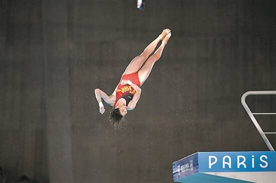 全红婵第五跳瞬间 羊城晚报特派巴黎记者 林桂炎 摄 |