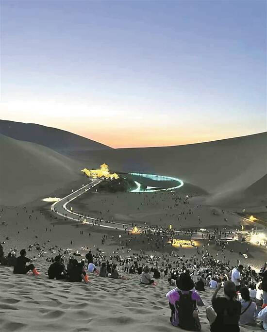 图\文 汪志 月牙泉,位于敦煌的鸣沙山下,被誉为“塞外风光之一绝”。入夏以来,每天数以万计的游客涌向月牙泉,当夜幕降临之时,广大游客纷纷坐在沙丘上欣赏美丽的月牙泉。 随手拍专用邮箱:ycwbwyb@163.com