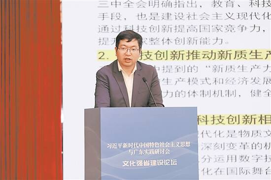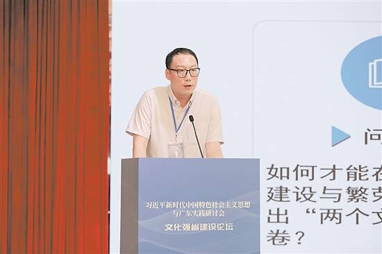 在青年学者论坛上,六位青年学者分别围绕早期岭南探源工程的实践探索和理论研究、用好用活广东红色资源、坚持以人民为中心的创作导向、推动国潮文创产品破圈出海、激发数字技术创新活力、粤港澳大湾区报刊文化的传承与创新等主题展开深入研讨。 增强文化自信,用好广东考古成果和红色资源 广东省2022年提出早期岭南探源工程,2023年公布实施早期岭南探源工程科学研究计划,进一步发力岭南考古研究、文化遗产保护与利用,做好中华优秀传统文化的传承和发展。广东省文物考古研究院先秦考古研究所所长、研究员刘锁强认为,基于广东乃至整个粤港澳大湾区所处的关键地理位置,广东的考古成果不仅可以讲好岭南故事,也可以佐证中国百万年人类史、一万年文化史、五千多年文明史,更可以为铸牢中华民族共同体意识以及构建人类命运共同体提供文化助力。 在考古研究之外,广东还是党史资源大省,具有光荣的革命传统。广东省委党史研究室第一研究处处长陈雷刚认为,广东红色资源对于涵养向上向善、刚健朴实的文化具有赋能作用,是实施高品质文化供给的源头活水。要通过推进广东红色历史和理论研究、扩大广东红色文化辐射力、加强广东红色遗址保护利用、构建广东红色基因传承工作机制等路径方法,不断激活红色资源的导向功能。 讲好中国故事,推动广东文化产业繁荣发展 在媒介融合的大趋势下,如何更好地讲好中国故事?广州大学新闻与传播学院教授、粤港澳大湾区影视创作研究院院长姚睿从舞台艺术、电影艺术、电视艺术和微短剧四个层面,对粤港澳大湾区文艺精品之间的形式共融、情感共鸣与价值共享等展开讨论,探索粤港澳大湾区文艺作品的共同体意识,为大湾区形象的艺术创作实践提供借鉴。 深圳市文化广电旅游体育研究中心副主任、副研究员高小军则以潮玩为例,指出“国潮”兴起和全球化背后是文化强国战略深入推进和国人日益增强的文化自信与文化认同。近年来,广东潮流玩具产业作为国货“潮品”的重要构成,呈现爆发式增长和破圈出海现象,但仍存在一些制约因素。他建议,要推动“国潮”全球化,培育中国式“潮流文化”,推动潮玩出海赋能对外文化贸易高质量发展。 坚持传承创新,拥抱数字化助力转型升级 创新是文化永葆生机的源泉,是推动文化发展的不竭动力。珠海市四维时代网络科技有限公司(以下简称“四维时代”)董事长、国家文化大数据体系建设标准编委成员崔岩结合四维时代的业务实践,探讨了人工智能三维数字化技术及其在红色文化、文化保护等领域的应用与发展,认为数字化技术不仅助力了中华文化的数字化传承与传播,更推动了文化遗产保护领域的新质生产力发展。 在数字化浪潮的推动下,粤港澳大湾区报刊文化应如何拥抱新质生产力,实现自身的转型升级?暨南大学(珠海校区)人文学院讲师杨刘秀子分析了粤港澳大湾区报刊的数字化转型与新媒体技术的创新应用,强调要将“纸上风云”的历史积淀之精髓融入“数字浪潮”中,不断提升国际传播力,让世界听见大湾区的声音、看见大湾区的风采,为构建人类命运共同体贡献智慧和力量。 羊城晚报记者 李妹妍