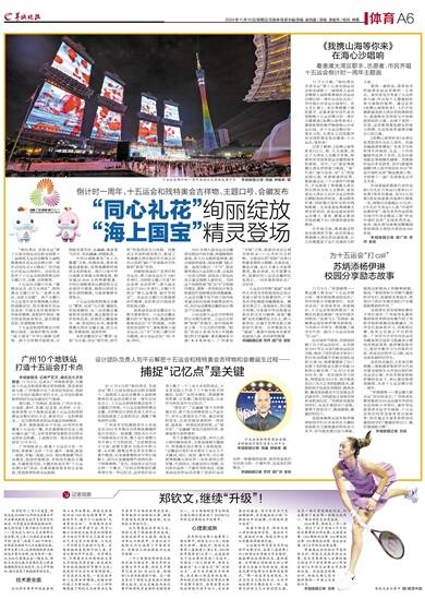 羊城晚报讯 记者严艺文、通讯员王贞言报道:11月9日,记者从广州地铁获悉,为提高十五运会和残特奥会的知晓度、普及度和参与度,广州地铁开启了系列宣传活动,选取10个车站打造倒计时打卡点,让市民在搭地
