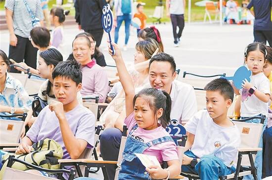 “绿色低碳”小小拍卖会上,孩子们争相举牌“竞拍” |