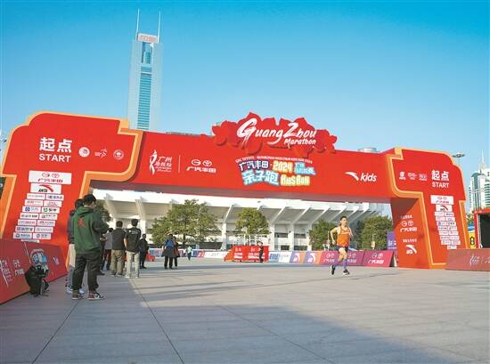 12月6日,广州天河体育中心南广场,有参加广马的跑手提前踩点试跑 羊城晚报记者 梁怿韬 摄