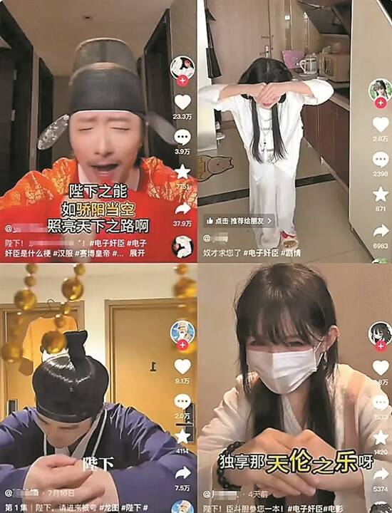 近期,“电子奸臣”一梗悄然传开。其源于短视频博主“岳母深蹲”在视频中所扮演的新奇人设:抱手作揖、满脸堆笑,以近乎谄媚的语言将当前一些常见却不值得称赞的行为习惯合理化,甚至夸张地吹捧赞美,使得屏幕前的受众仿佛置身于古代宫廷之中,在奉承中飘然上头,获得所谓的情绪价值。“您点外卖,是因为您不浪费一丁点时间,集中精力办恩泽于天下之大事”“您不是沉迷手机,您只是日理万机”“拖延症说明您做事效率高”……类似的短视频在网络上涌现,“电子奸臣”博得了一波流量,相关话题播放量上亿。 红星新闻评论员文章指出,对于“电子奸臣”,没必要太当真。年轻人从中收获一些低成本的情绪价值,这当然没问题,但人生和生活的难题,终究需要在冷峻的现实中去面对。拿起手机去感受一下“众星拱月”“百官交赞”,当然是一种快乐;但放下手机,去看看“江山起伏”“民间百态”,或许会有更大的收获。