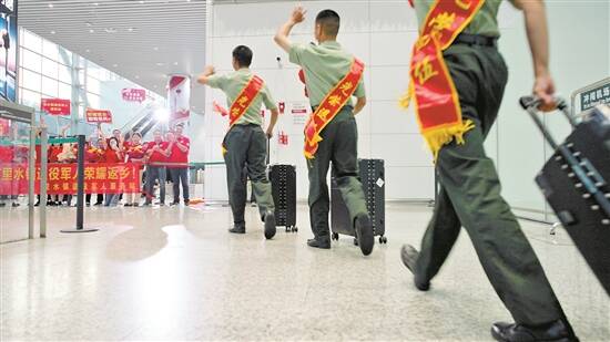 佛山市南海区里水镇退役军人服务站今年9月举行欢迎仪式,迎接返乡退役士兵 |