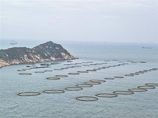 珠海万山区桂山岛上的重力式深水网箱 羊城晚报记者 许悦 摄 |