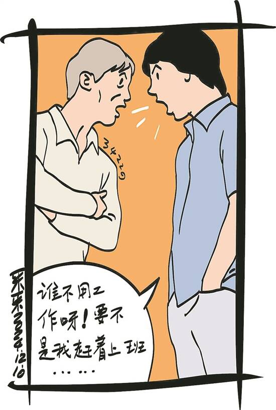 插图:采采 早上,彩票店里坐满了人,就连电脑操作台前也排了几个人。这家彩票店开在菜市场和居民小区中间,人来人往,很多早上买菜回来的老人家都喜欢进来坐下聊天,再买上几注彩票,生意自然不差。 排第一位的是张伯,他年纪已大,戴着老花眼镜,选号码费的时间比较长。等了一会,排在最后面的一个年轻人受不了,嘴里嘟囔道:“都一大把年纪了,买彩票来干啥。磨磨蹭蹭,真是的,我还赶着时间要上班呢。” 张伯虽然眼花,可耳朵却十分灵,脸色一下子拉下来,扭头说:“年纪大就不能买彩票吗?就不能中奖吗?该我说,你们年轻人才不应该买彩票,整天想着中大奖,就不用工作了。” “谁不用工作呀!要不是我赶着上班,我能这么着急嘛。你们老人家退休了时间空闲,一大早可坐车去公园去买菜,也可错开上班高峰,等会再去,等下再买?”年轻人似乎一肚子火气,把矛头又对准老年人身上。 (黄超鹏)