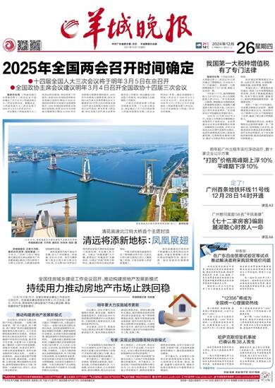 中共广东省委主管、主办 羊城晚报社出版 1957年10月1日创刊 2024年12月26日 甲辰年十一月廿六 星期四 责编