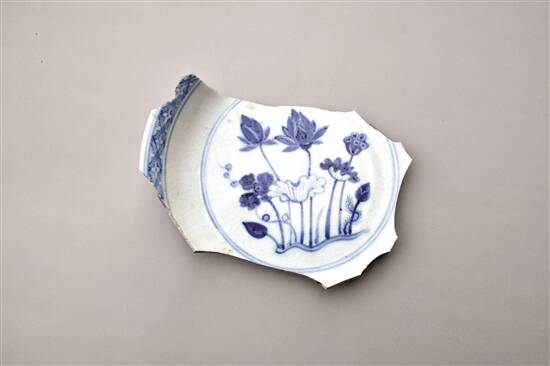 出土青花莲花纹盘 受访者供图 |
