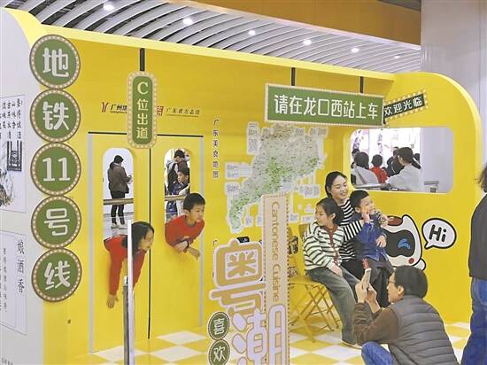 28日,设置在广州地铁11号线龙口西站的文化展览装置,吸引市民拍照打卡 通讯员供图 |