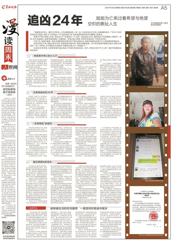 文/羊城晚报《人世间》栏目采写组 图/受访者提供 这是2024年第49期、也是2024年最后一期《人世间》。 沿着他人的命运轨迹,在生活起伏跌宕处,在心灵泛荡细微波澜时,因有着对人性和生命的共同感知和敬畏,在过往的48期报道里,我们继续与读者朋友们相会于字里行间,保持着一种无言的默契:我们不谈论彼此,而是通过“人世间”这面观照万象的镜子,更深地了解彼此。 这不是一件很难的事情,千千万万个故事中总有你我的影子,但我们在讲述这些故事时始终保持着一份慎之又慎的态度。《人世间》栏目开栏约两年半以来,落笔在故事上、回归到人本身,力求真实、真切、真情,是我们一以贯之的方向。在2024年,我们也有了新的思考—— 重提栏目名,“人世间”相较于“人间”,多了一个字,“世”是世事,是世俗,更是世界。今年,我们站在更广阔的视角,不仅讲述个人的悲欢离合,更关注个体与社会、与时代、与世界更为深刻的联结,在世中寻人、让人入世。 在这样的思考下,从城市霓虹到乡村烟火,从经济发展到产业转型,从科技飞跃到文化传承,2024年,在不同主题里,我们定格人世间最真挚的情感与最真实的面貌。感谢上百位愿意跟我们聊聊天的朋友们,在他们的故事中,有梦想者扬帆启航、怀志者奔向远方,有行善者心藏暖阳、失意之人不忘站起,有勇敢者挑战自我、享受世界的精彩……我们关注与时代同行的弄潮儿、关注那些自带流量和光环的人物故事,同时也关注人间烟火、关注大时代下普通人的命运和故事。 48期《人世间》报道版面固然已经一纸留存,然而故事是流动的,人生还在继续。今年的最后一期,我们回访了以往几位采访对象,听他们讲述被报道后生活的变与不变,也将我们对这一年《人世间》故事的注脚放在这里,诚邀您品阅。 故事无尽,相会有时。期待我们的下一次相遇,在更加精彩纷呈的《人世间》里,再次共鸣。 坚守与转型 2024年春节期间,来自河北的制衣工何广深选择留在广州工作。除夕夜,他与其他留守的工人一同下馆子,“年夜饭还是要吃点好的”。扒完旧年的最后一口饭,何广深迎来自己的不惑之年,也迎来他在海珠区康鹭片区做制衣工作的第七年,这里已成为他的第二故乡。 康鹭片区紧挨着中大布匹市场,村内驻扎了数目庞大的制衣厂及小作坊,48小时内出货的“康鹭速度”,让这里成了全国快时尚产业链中独一无二的纺织村。 2023年,广州海珠区凤阳街凤和(康乐村、鹭江村)城中村更新改造项目靴子落地,改造策划方案拟保留大型专业市场,拆除“握手楼”,打通片区路网,未来定位为广州时尚之都、城央都市产业活力区。这一年12月,康乐村经历“首拆”。 “变革”的气息蔓延到康鹭片区的各个角落。何广深组建了20多个零工招工群,“拆迁”成为群里3000多名零工和制衣厂老板最常被提及的词。今年年初,在《人世间》栏目报道《广州服装人的2024春节:往前走,就是温暖的春天》中,何广深提到,“希望大家抱团搬迁,劲往一处使。” 12月25日,拐过城中村内“握手楼”间的六七条巷子,路过坐在路边等待招工的人群,记者在一间制衣厂的门口再次见到了制衣工人何广深。一年前,他带着记者去看当时他做工的工厂:位于康乐村第五合作社的一个十字路口附近,在一栋民房的三楼,地方不大,里面堆积着各种半成品。在缝纫机前,何广深动作娴熟地将组成连衣裙的两块长条面料缝合在一起。 如今一年过去,康乐三社、五社已完成拆迁,被拆下的楼房砖瓦已被运走,地面空空如也,大型作业机器发出轰鸣声,与周边制衣厂里缝纫机的嗡嗡声互相交织。“那些被拆掉的‘握手楼’里以前有将近一千间小型制衣厂。”何广深指着工地解释道,拆迁后许多制衣厂老板都挪到了鹭江村,远一点的挪到了海珠区的其他制衣村,比如瑞宝村、土华村等等,更远的则搬到了番禺区。 “康鹭小型制衣厂的最大优势就是‘小单快反’。从客户下单,到布料从中大布匹市场运到制衣厂,再到制衣厂老板招募工人,以及制衣厂出货,所用时间只需要两天左右。所以制衣厂们都不想离中大布匹市场这个‘太阳’太远。”何广深告诉记者。 随着制衣厂搬迁,何广深也感到来自康乐鹭江的订单逐渐转移至其他制衣村。因此,今年他每周常抽出两到三天的时间到番禺区的制衣厂工作,每日所赚的酬劳不比康鹭片区低。 这一年里,何广深自信有制衣的手艺在,就能吃上一口饭。但他也有忧虑,特别是工厂搬走,安稳规律的生活被打破。如今,随着逐渐明确的程序和逐步推进的工作,关于“拆迁”的种种不确定有所消散,何广深有更多的心思打趣:“在番禺工作会更轻松些!番禺那边的工人和康鹭的风格不太一样,每天工作够一定时间我们就会休息。”同时也对未来有了更多的期待——“希望明年制衣厂的生意会更好。我想多赚些钱,让家里人过上更富裕的生活。” 执着与等待 2025年脚步临近,李海玉有两个新年愿望,第一个就是要见证易某华被判处死刑。 今年3月,《人世间》栏目报道了“为亡弟追凶24年”案,近一年时间里,记者与李海玉保持联系,持续关注该案件进展。 1992年,李海玉9岁的弟弟李焕平被易某华杀害。1997年起,李海玉辍学,一边打工一边为弟弟“追凶”。20余年间,李海玉多次被骗,险些被拐卖,丈夫与她离婚,父亲病逝。直到2020年,李海玉找到易某华,并向湛江警方提供线索,