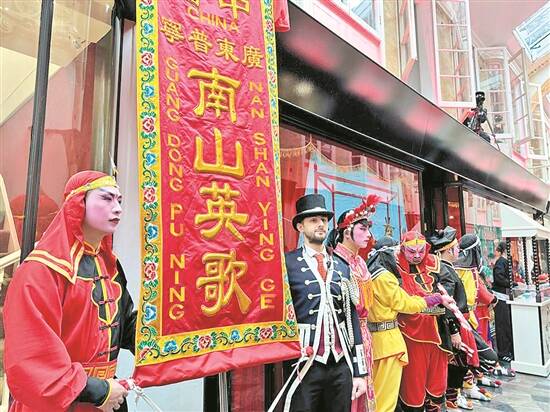 普宁英歌亮相伦敦 羊城晚报伦敦特约记者 余佳颖 摄 |