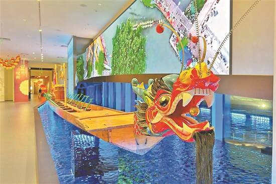 广东非遗文化馆内展示的龙舟 羊城晚报记者 曾育文 梁喻 刘颖颖 摄 |