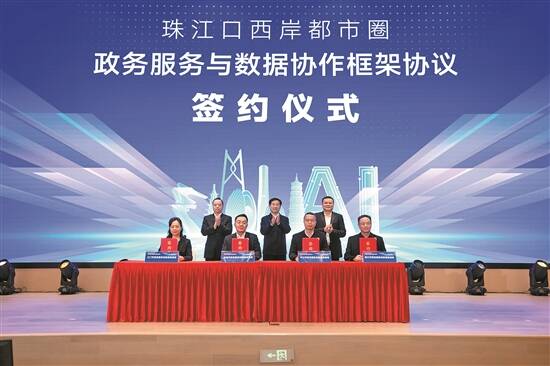 羊城晚报讯 记者李旭、通讯员黄靖怡报道:12月31日,珠江口西岸都市圈政务服务与数据协作框架协议签约暨系列大模型产品发布活动在珠海举行。珠海、中山、江门、阳江四市政务服务和数据管理局主要负责人共同签约启动珠西都市圈政务服务与数据协作合作发展。 2023年10月,广东省人民政府发布了《珠江口西岸都市圈发展规划》,明确将以区域协调、功能互补、辐射拓展为导向,以珠海为核心,以中山、江门、阳江为增长极,构建“一核三极、两圈四轴”的都市圈总体发展格局。 广东省政务服务和数据管理局党组成员魏文涛表示,“按照数字广东建设总体部署,四市在政务服务和数据管理方面主动作为,充分依托全省政务服务‘一网通办’基础支撑和数据‘一网共享’平台,创新运用数据共享、标准衔接、流程优化等手段,持续强化跨区域业务协同管理,推进数据资源开放共享,实现政务服务从‘能办’向‘好办’转变,持续增强企业群众的获得感、幸福感和安全感”。 近年来,珠海持续加强与中山、江门、阳江政务服务交流合作,分别与三市建立“跨城通办”合作关系,积极探索代收代办、多地联办、全流程网办等方式创新政务服务合作机制,推动跨城政务服务“业务通、系统通、数据通、证照通、用户通”。 据介绍,此次四市联合签署合作框架协议,将坚持以都市圈一体化高质量发展为方向,围绕推动政务服务“跨域通办”,推进公共数据资源共享利用,探索建立便民服务热线联动处置,建立跨市12345热线电话直通机制三方面加强政务服务和公共数据共建共享,逐步建立珠西都市圈政府服务品牌,打造资源共享、优势互补、协调联动的现代化都市圈。