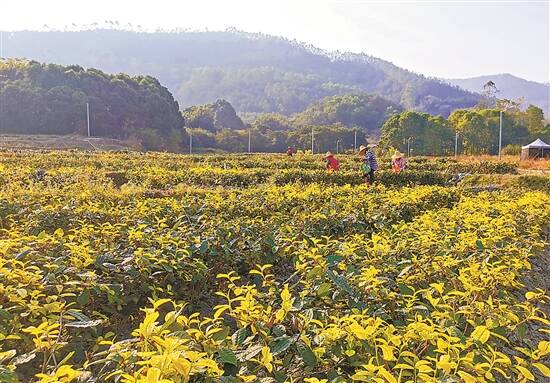 文/图 羊城晚报记者 郑俊良 通讯员 刘烁 岭南温润,冬日也是收获季。日前,云浮新兴县太平镇中黄村的茶园内,茶树经过一年的积累,精华尽收于肥壮的叶中,茶农们正抓紧时机采摘、加工冬茶。 近年来,新兴县立足本地茶产业发展优势和特色,以培育优化本地特色品牌茶叶新品种、增加茶农收入为目标,坚持全产业链发展思路,努力做到稳规模、提品质、强品牌、增效益。 据了解,新兴县五叶茗农业科技有限公司团队在国内茶叶市场产能过剩的情况下,坚持立足科技创新、走自主研发茶树新品种的道路,在华南农业大学黄亚辉教授团队的支持下,历经10年时间,培育出具有自主知识产权的“禅金茶”系列茶树新品种。 “禅金茶”是当地有十多年种茶经验的师傅李国勋从云南大叶种茶树里发掘并发扬光大的,它的特点就是茶叶苦涩味较低,能制作红茶、黄茶、绿茶,尤其制作绿茶品质出众,有熟板栗香,深受茶叶消费者喜爱。禅金1号、禅金3号于2023年经中华人民共和国农业农村部植物新品种办审定为新品种。新品种叶色金黄,内质优异,游离氨基酸达9%,制成绿茶滋味鲜爽甜醇,栗香浓郁,回甘强而持久。目前它的表现为长势壮旺,丰产性好,一亩茶园能采制干茶300斤左右。 五叶茗农业科技有限公司不但从事茶叶育苗、茶树种植、茶园管理、茶叶采摘、生产加工、销售等工作,还积极投身“百千万工程”,通过“公司+基地+合作社+农户”模式,累计辐射带动云城区、云安区、郁南县等乡镇的农户从事茶叶种植,规模化发展茶产业,将更多优秀的好品种、好技术推广开来,让农民受益,也让消费者享受优质农产品,让产业振兴惠及千家万户。