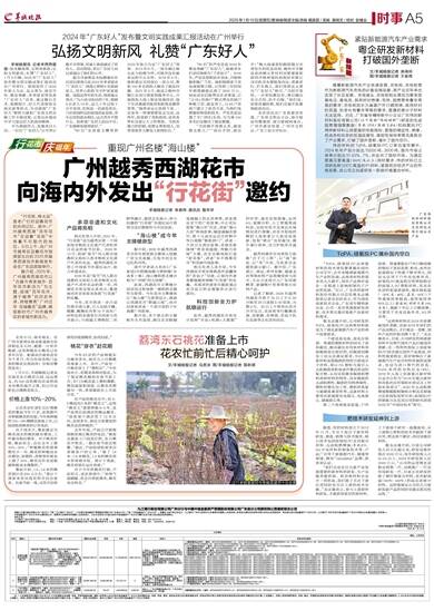 羊城晚报记者 李春炜 通讯员 詹苹苹 “行花街,转大运”是老广们对迎春花市的共同记忆。其中,广州越秀西湖“百年花市”在迎春“花街”中有着不可取代的地位。9日上午,由广州市越秀区迎春花市指
