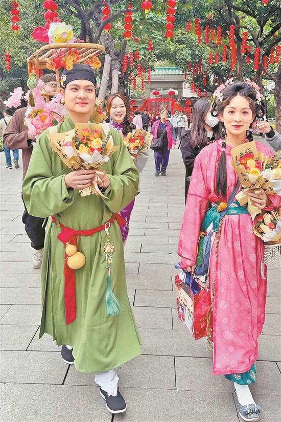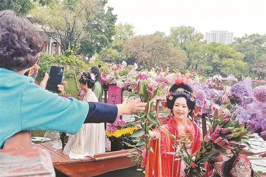 羊城晚报讯 记者马思泳、通讯员荔宣报道:1月22日,第十五届“荔枝湾·新西关”民俗文化活动“花漾荔湾,春满羊城——2025广州水上花市”(以下简称“水上花市”)在广州荔湾湖公园开幕,千年水陆花卉交易盛景再现,一场梦幻的繁花之旅就此展开。 本届水上花市以水陆结合的方式,打造荔湾水陆花市盛宴,结合“广州过年 荔湾购花”的花卉消费热点,全面提升“水秀花香”品牌魅力。 当日10时,在荔湾湖公园水上舞台,独具岭南传统文化特色的雄狮献瑞拉开了水上花市的序幕。水上舞台精彩节目轮番上演,梁山山、周丽珊带来新派粤剧《归家》,铜管乐器组合“Five Tone”带来铜管五重奏,“火龙迎春,乐游荔湖”主题演出……精彩的表演让人耳目一新。 随后,水上花墟在荔湾湖公园正式开埠。一艘艘特色花船在湖面缓缓驶过,多位身穿汉服的俊男美女乘坐花船叫卖鲜花,多种珍稀花卉、传统年花琳琅满目,重现昔日“花渡头”盛景,人们仿佛穿越时空,回到了那个岭南水上贸易繁荣的年代。 在亲水平台,市民纷纷挑选心水靓花,感受独特的水上买花的乐趣。 “今年是我第二次到广州过年,去年体验了传统迎春花市,今年带着儿子来体验水上花市。”来自上海的市民汪女士告诉记者。 本届水上花市主打“花漾百出”,除了常规的水上舞台和水上花墟以外,还有多个主题打卡点散落在荔湾湖公园内,如巨型祈福桃树、水上花市十五周年鲜花瀑布纪念墙、“迎春花蛇”“花开利是”“一枝独秀”等。 在水上花市民俗体验区,“卖花郎”“财神爷”“花仙子”等人物陆续现身,他们现场卖花、卖鱼灯、卖元宝棉花糖,并和市民互动合影。 荔湾湖公园船桨广场的文创市集也同步开启,玉雕、剪纸、广绣等非遗摊位吸引大量市民驻足。 “本届水上花市在荔湾湖公园打造了以‘水’为主的花船巡游,以‘陆’为主的花卉装置打卡点以及具有粤剧、西关小姐等文化元素的民俗巡游。”荔湾区文广旅体局民俗文化活动推广人李师颖表示,本届水上花市创新联动荔湾区辖内的专业花卉市场,希望市民游客可以体验贯穿全年的购花服务,买到物美价廉的鲜花产品。